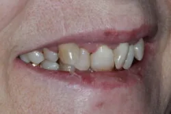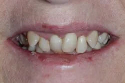 3. A temporary acrylic six-unit anterior bridge was fitted to allow for soft tissue healing and occlusal adjustment over a three-month period.